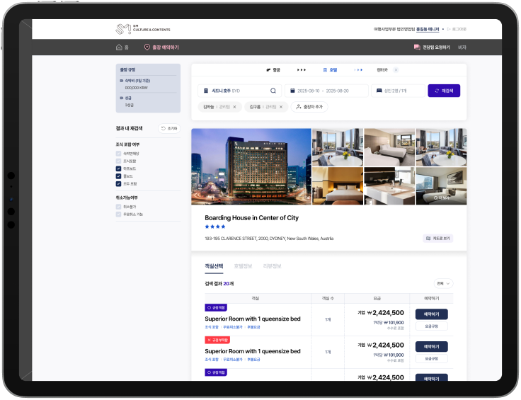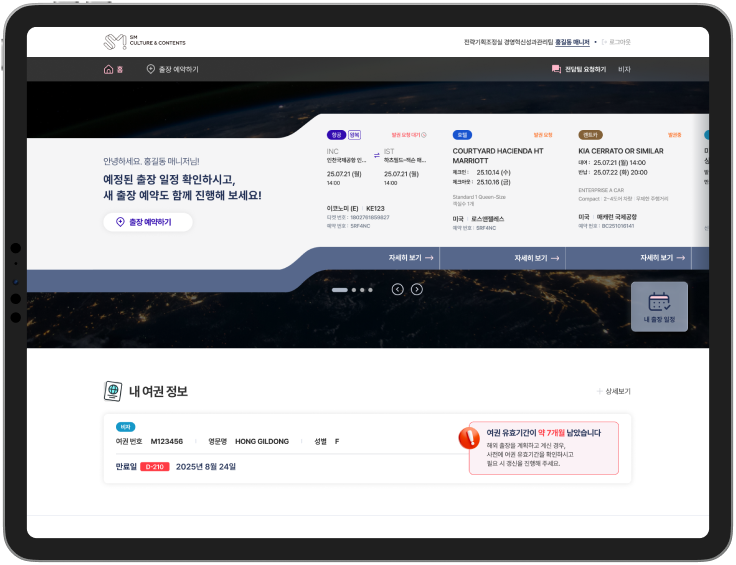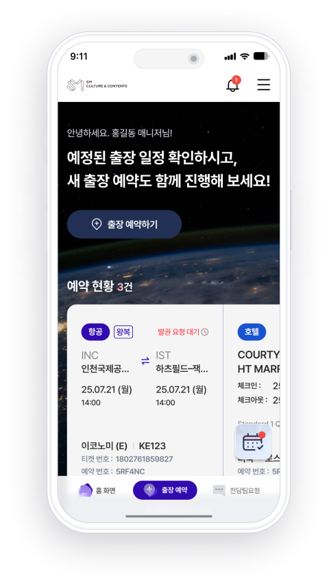 항공, 호텔, 렌터카, 비자의 종합 출장 예약 시스템으로 예약/취소/환불 등 손쉽게 빠른 출장 준비가 가능합니다.